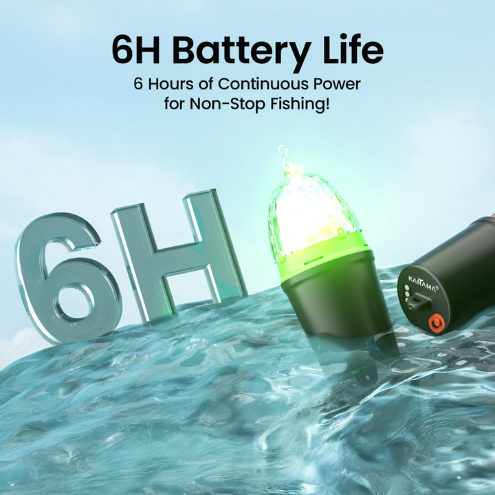 KANAMA Smart Fishing Light shines brightly at 100 lumens, emitting a strong and stable light underwater.With its unique light guide tech, it enhances light penetration in water, ensuring optimal effectiveness in attracting fish even in murky conditions.